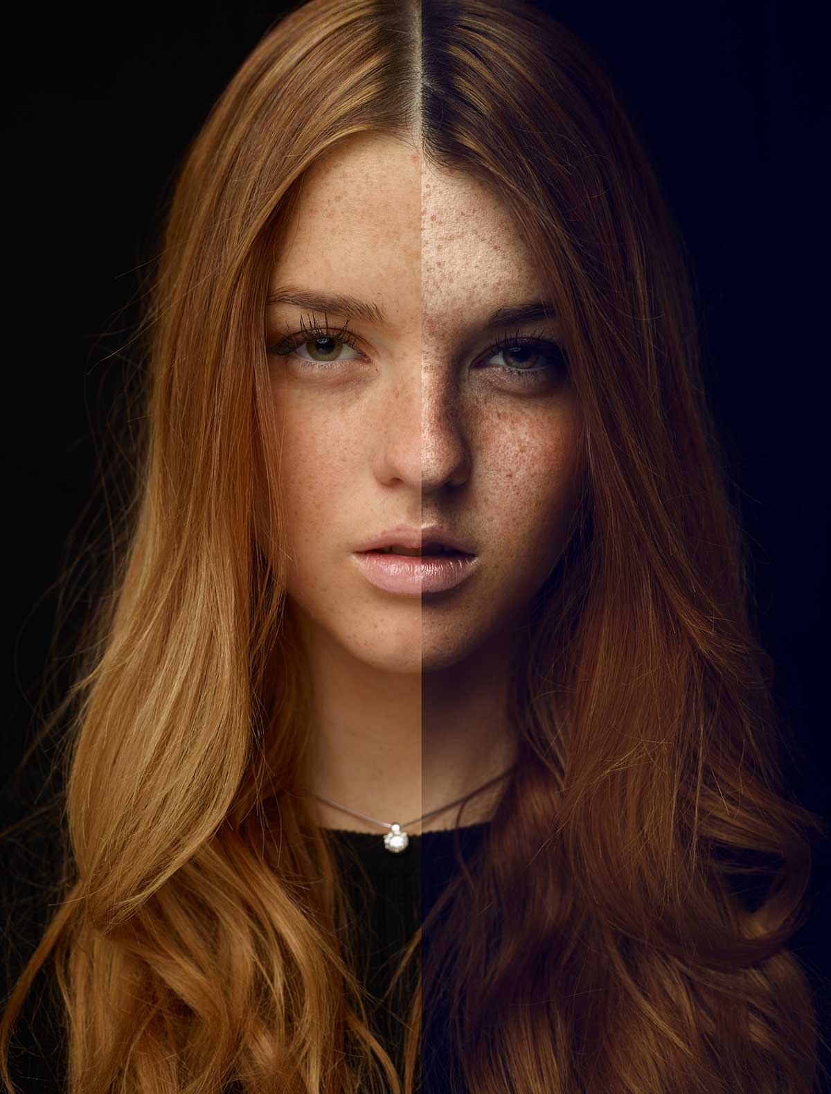 Für den Genetiker handelt es sich um eine Variante des Melanocortin-1-Rezeptors, die Sommersprossen und rote Haare verursacht, während Abergläubische vergangener Zeiten darin ein Werk des Teufels sahen. Heutzutage ist es Geschmackssache, wie man zu Sommersprossen steht. Robert Sakowski, dessen „Schäferstündchen“ mit Berufs-Nackedei Micaela Schäfer wir in DOCMA 57 (Seite 58 ff.) präsentiert haben, stand bei diesem Projekt das Porträt eines sommersprossigen Mädchens vor Augen, und Model Lara Vogel entsprach dieser Vorstellung perfekt. Das Shooting mit einer 60 Megapixel auflösenden Mittelformatkamera nahm nur 30 Minuten in Anspruch; etwas mehr Zeit erforderte die Nachbearbeitung in Photoshop, die Robert Sakowski unten in drei Schritten beschreibt – ein Vergleich mit Calvin Hollywoods Bearbeitung eines männlichen Porträts empfiehlt sich.