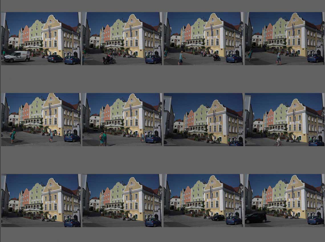 Dann bleibt nur, eine Reihe von Bildern zu machen und das Problem nach der Reise mit Photoshop anzugehen. Noch vor gar nicht allzu langer Zeit hätte man die so entstandene Bildserie übereinander als Ebenen in einer Datei gestapelt und sie zunächst einzeln ausgerichtet – falls man bei der Aufnahmen kein Stativ dabei hatte.