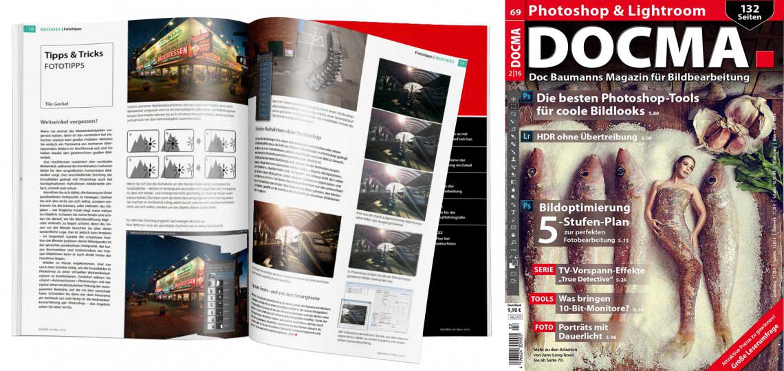 Mehr Tipps & Tricks finden Sie in der neuen DOCMA 69, die Sie ab dem 10. Februar 2016 im gutsortierten Zeitschriftenhandel, an Bahnhöfen und Flughäfen sowie bereits jetzt bei uns im DOCMA-Shop bekommen. Dort (und nur dort) können Sie zwischen der ePaper-Ausgabe und dem gedruckten Heft wählen.