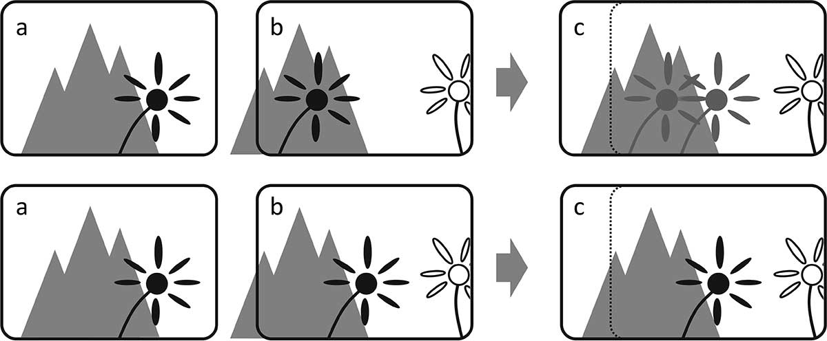Bemühen Sie sich dabei, die Kamera um ihren parallaxfreien Drehpunkt zu bewegen. Drehen Sie sich also nicht um sich selbst, sondern umkreisen Sie die Kamera, oder vielmehr das Objektiv – der fragliche Punkt liegt meist mitten im Objektiv. Schauen Sie vorne hinein und achten Sie darauf, wo die Blendenöffnung liegt – oder vielmehr zu liegen scheint, denn die Linsen vor der Blende täuschen Sie über deren tatsächliche Lage. Das ist jedoch kein Problem – im Gegenteil: Gerade die scheinbare Position der Blende (präziser: deren Mittelpunkt) ist der gesuchte parallaxfreie Drehpunkt. Bei kurzen Brennweiten und insbesondere bei Fisheye-Objektiven kann er auch direkt hinter der Frontlinse liegen.