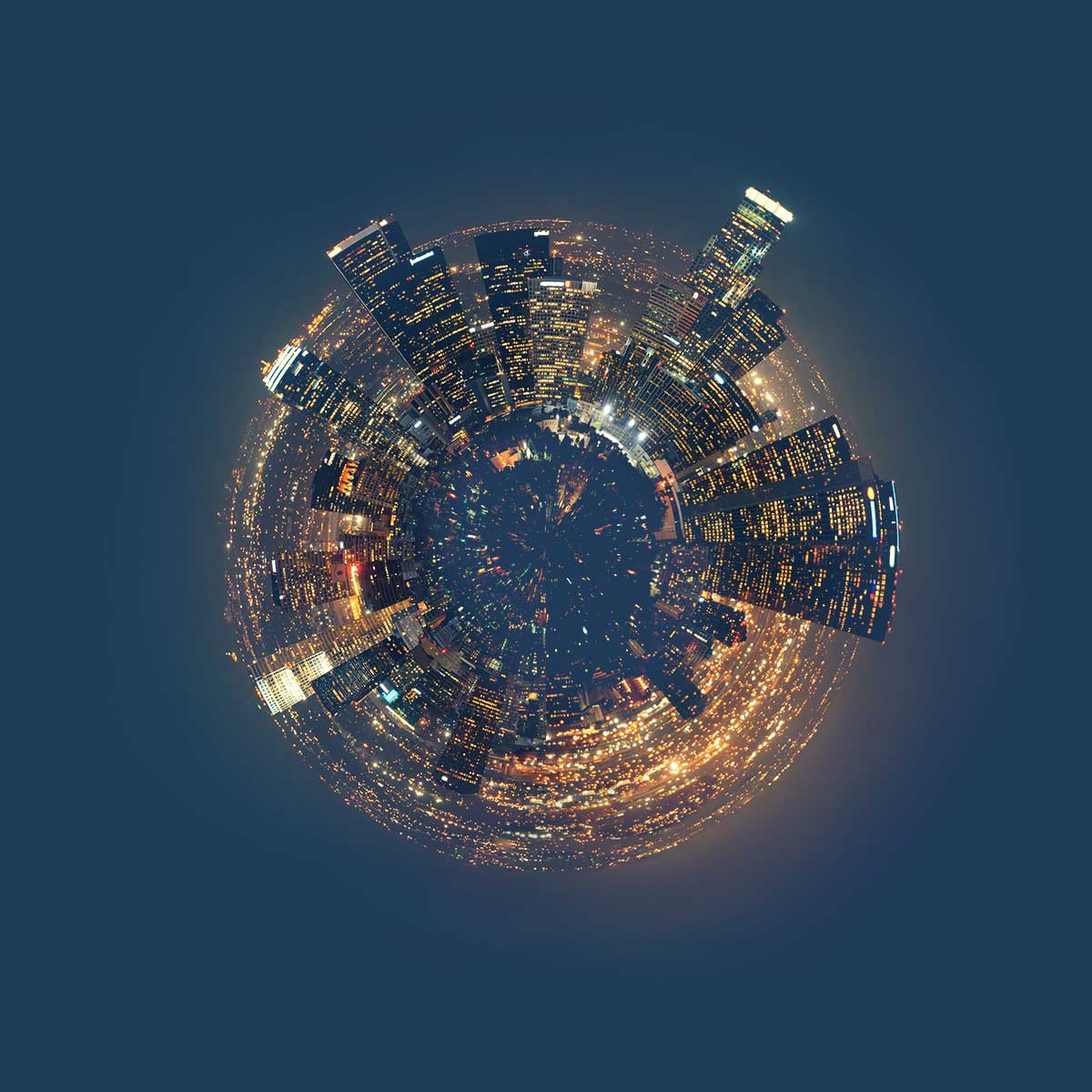Mit dem Action-Set „Tiny Planet“ verwandeln Sie eine Landschaft in einen kleinen Planeten. Idealerweise nutzen Sie hierfür ein Foto mit einem am oberen Bildrand möglichst gleichförmigen Himmel.