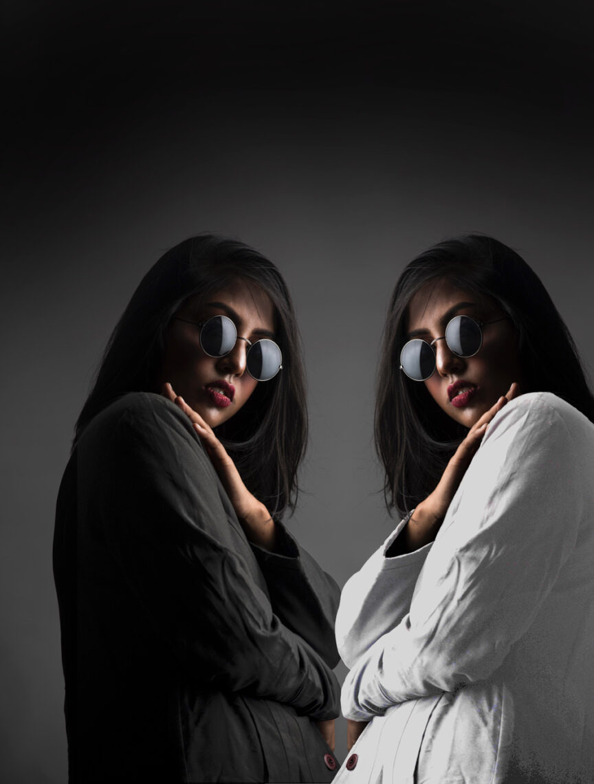 Das weisse Kleidungsstück reflektiert mehr Licht, trotz dem Licht von oben Links.