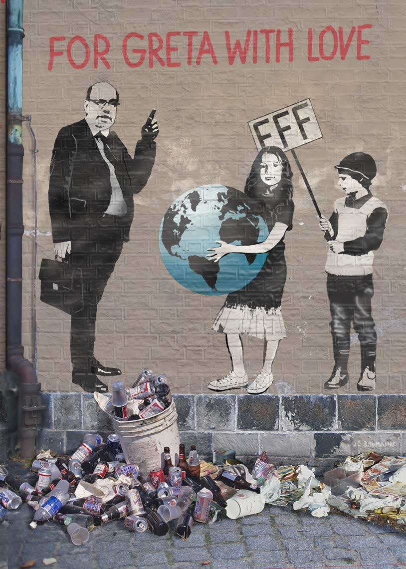 In DOCMA 89 stellen wir Ihnen eine digitale „Wandbemalung“ im Stil des britischen Streetart-Künstlers Banksy vor, realisiert von Doc Baumann. Sie zeigt, wie der visuelle Kommentar von Banksy zu den kritischen Äußerungen behäbiger Erwachsener an den „Fridays-for-Future“-Schülerdemos aussehen könnte.
