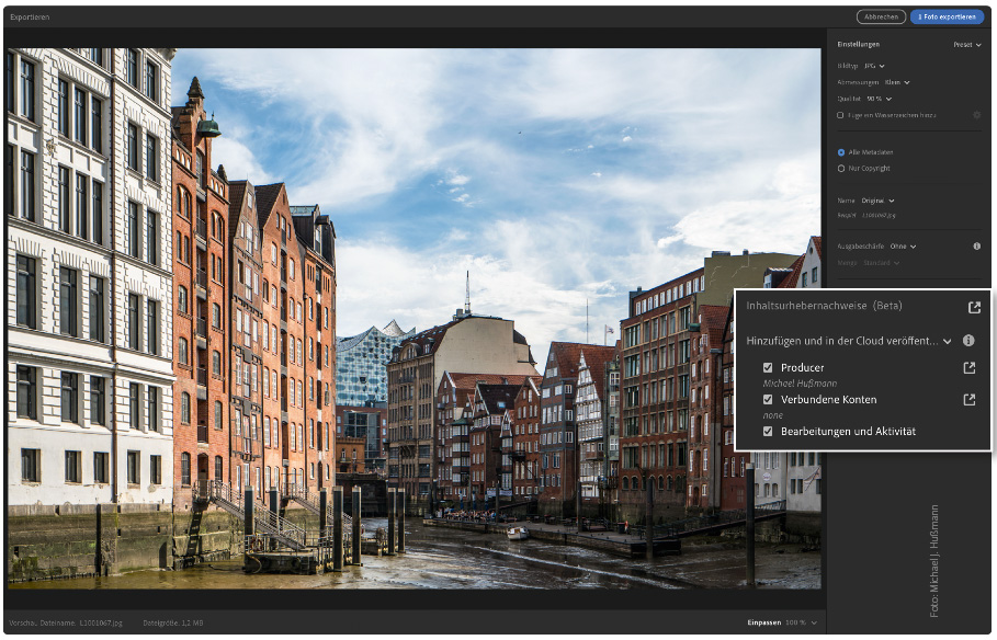 - Inhaltsurhebernachweise in Lightroom aktivieren und nutzen: https://helpx.adobe.com/de/lightroom-cc/using/content-credentials-lightroom.html