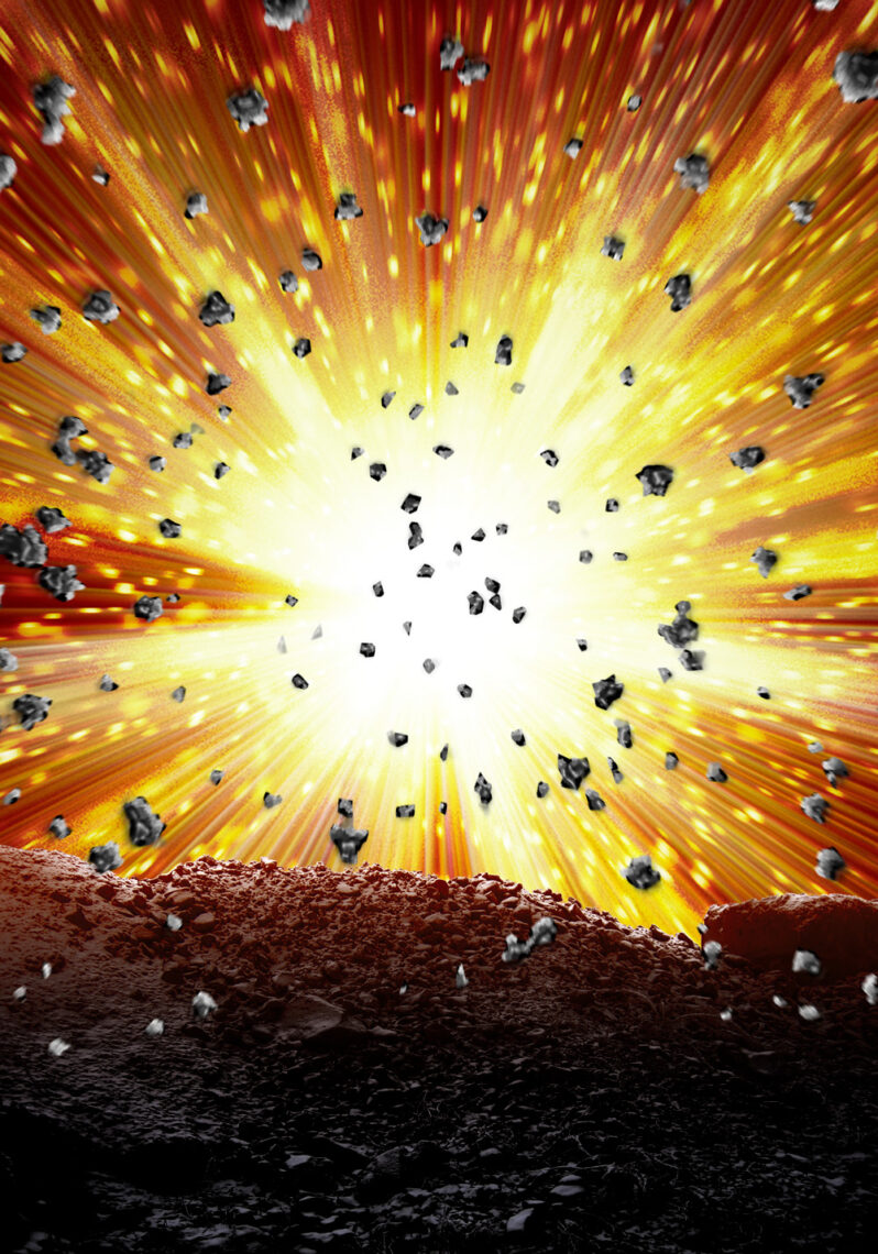 Lieber Doc Baumann, ich möchte eine Explosion mit herumfliegenden Steinbrocken darstellen. Dabei kommt es mir auch darauf an, dass diese Stücke unterschiedlich groß und individuell geformt sind und realistisch (von hinten) beleuchtet werden beziehungsweise vom Explosionszentrum fortweisend dunkel schattiert sind. Wenn das ein paar hundert Brocken sind, möchte ich nun nicht jeden einzeln so bearbeiten. Haben Sie einen Tipp für mich? Herzlich, Gert Becker