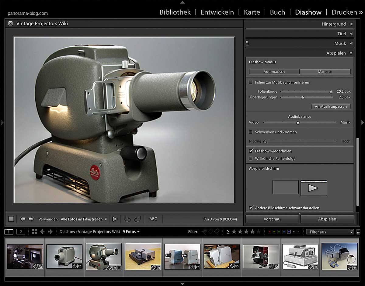 Die Diashow präsentiert eine Lightroom-Sammlung auf dem Vollbildschirm. Lernen Sie, Diashows einzurichten und zu gestalten.