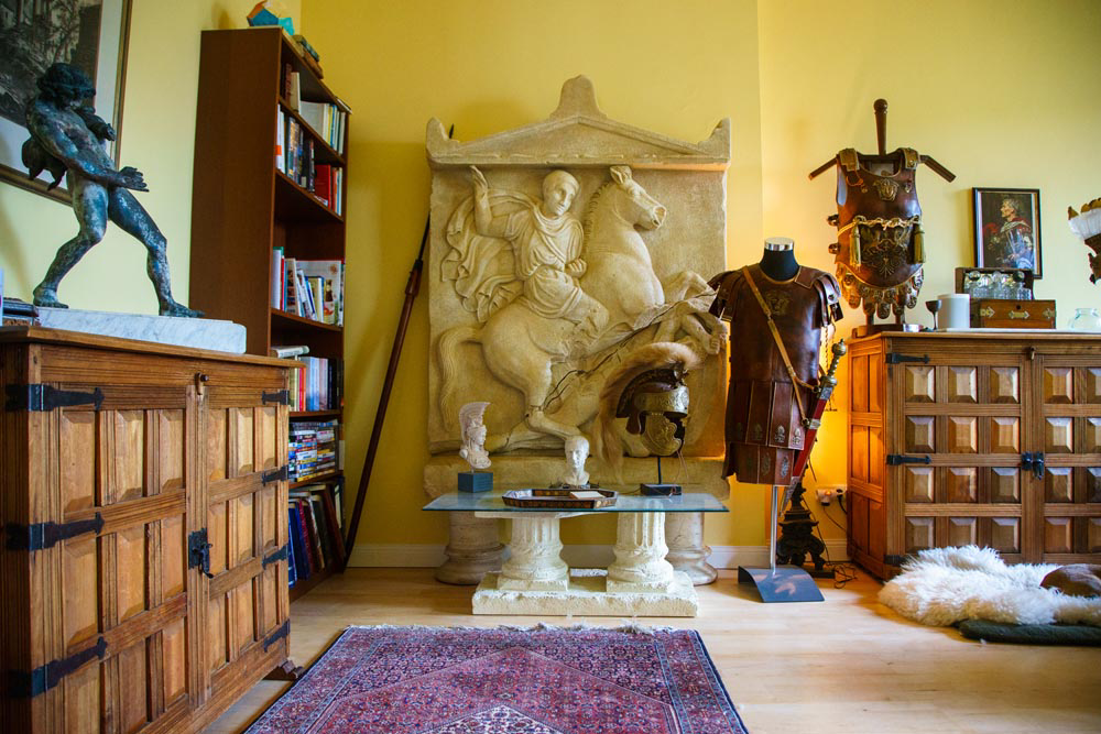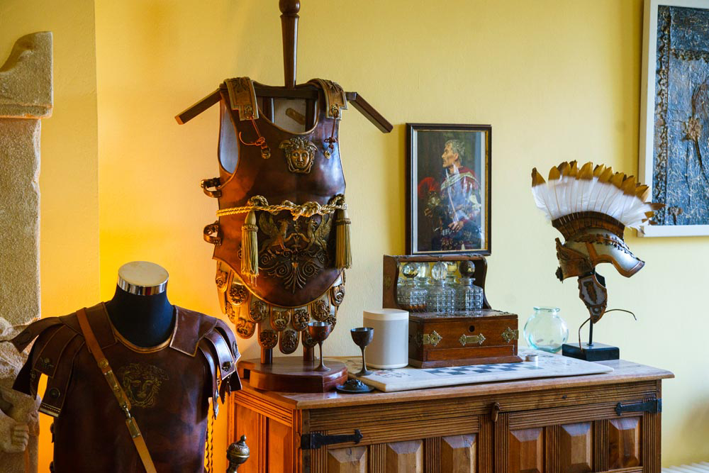 Nein, wir sind nicht in Rom und auch nicht in den Privatgemächern Julius Caesars. Wir sind bei Alberto Kunz, der unter Coseplayern bekannt für seine authentischen Julius-Caesar-Darstellungen ist. Wirklich beeindruckend war, was er im Laufe der Zeit hier kreiert und gebastelt hat. Von der Qualität her könnten das echte Museumstücke sein.