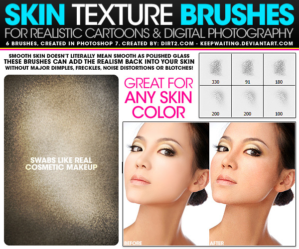 Bei aufwendigen Hautretuschen gehen mit der Entfernung von Unreinheiten und Glättung der Haut mitunter auch Strukturen verloren, die für das natürliche Aussehen der Haut erforderlich sind. Abhilfe kann beispielsweise das abschließende Auftragen von Strukturen wie Poren oder Sommersprossen schaffen. Für diesen Zweck bietet das deviantART-Mitglied Andrew ein Set mit Photoshop-Brushes auf dem Kreativportal deviantART zum freien Download an.