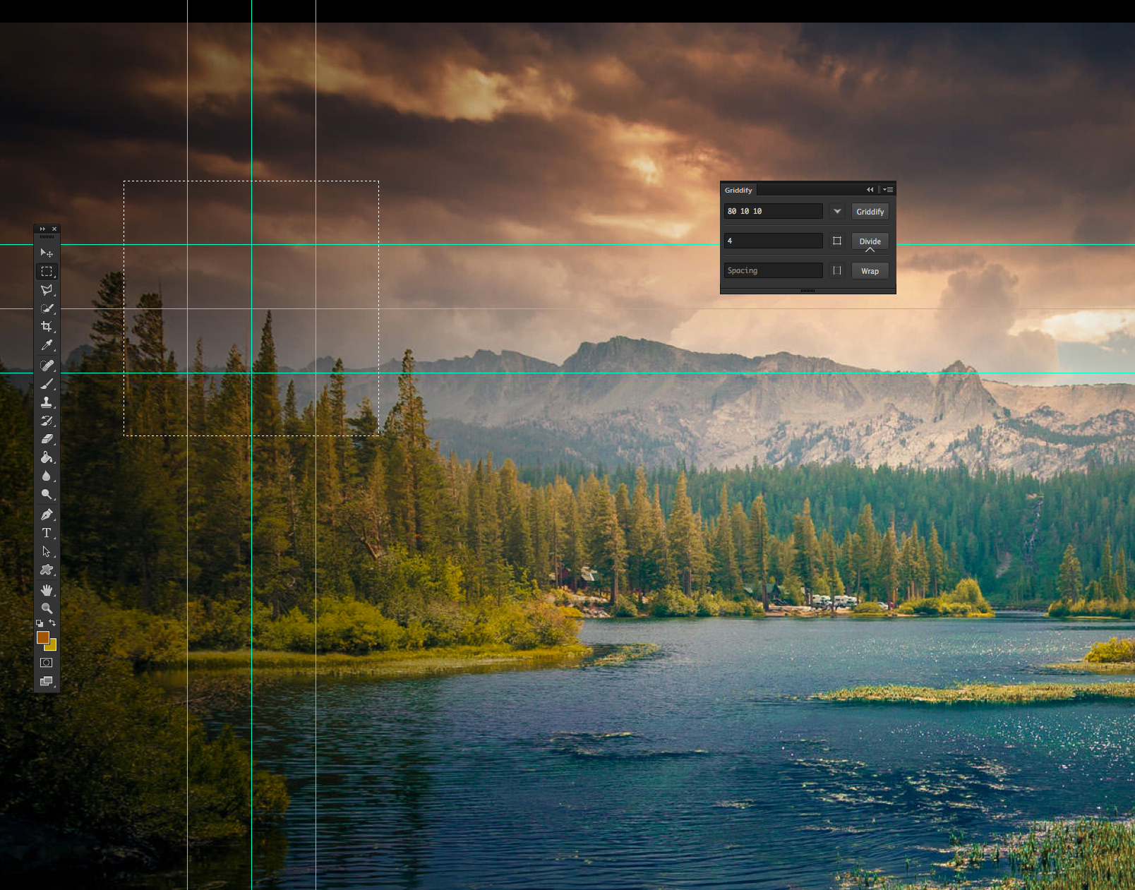 Mit der kostenlosen Photoshop-Erweiterung Griddify lassen sich exakt positionierte Hilfslinien erstellen.