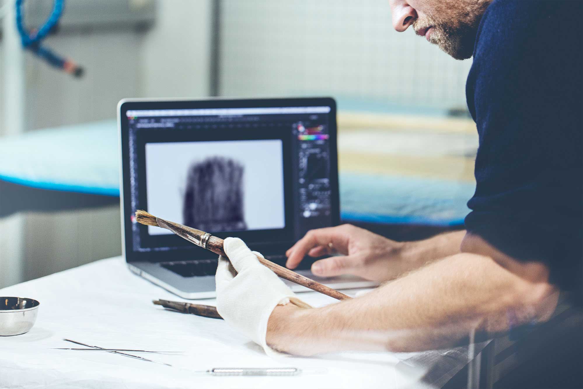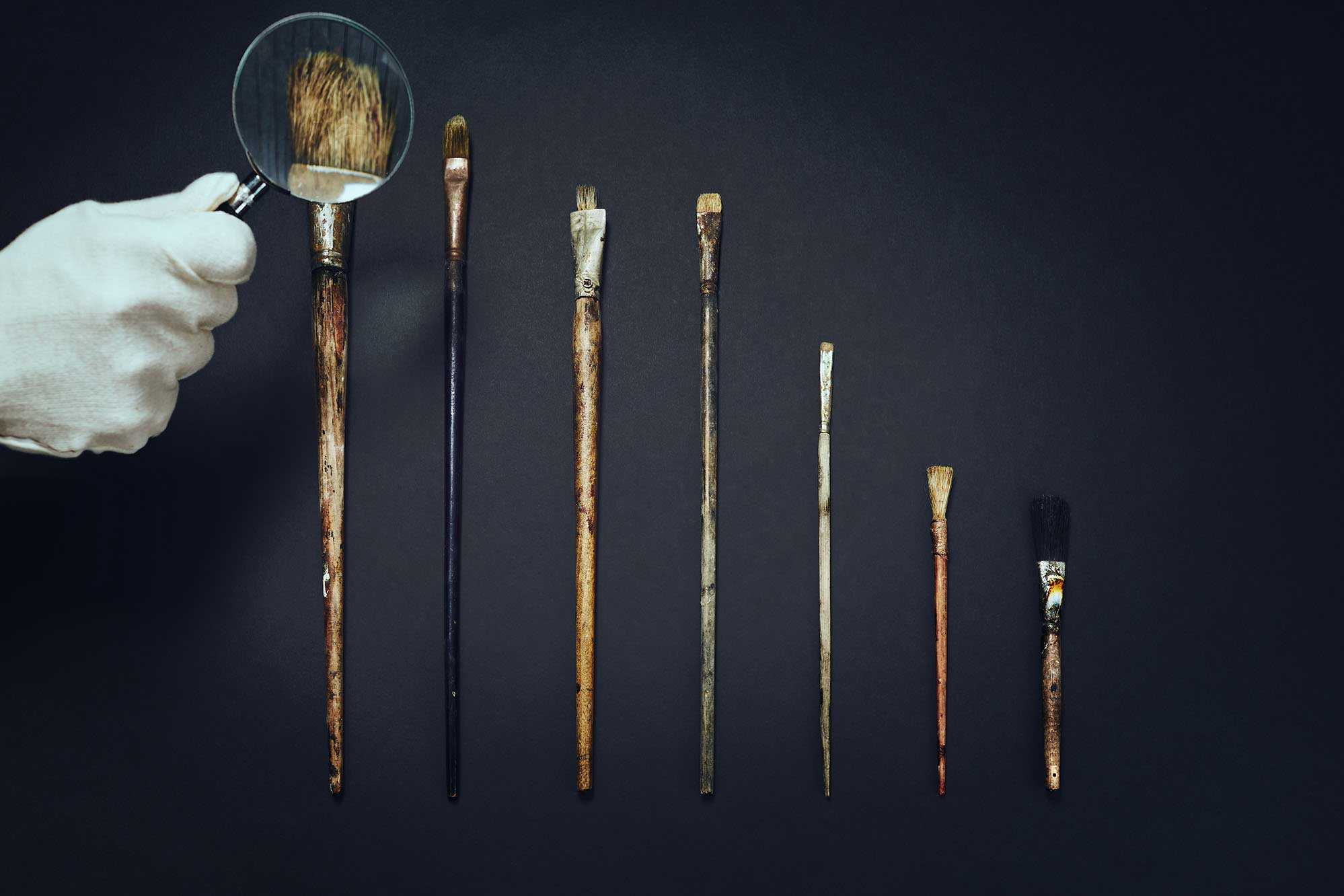 In enger Zusammenarbeit mit den Konservierungsexperten des Munch Museums wurden die Originalpinsel von Edvard Munch mit ultra-hochauflösenden Kameras 360 Grad fotografiert, so dass alle Details aus allen Winkeln erfasst wurden, um eine präzise dreidimensionale Abbildung zu erschaffen. Neben den physikalischen Eigenschaften der Pinsel, wie Flexibilität und Borstentyp, haben die Kunsthistoriker auch den künstlerischen Stil und die Pinselführung von Munch genau analysiert und mit den vorliegenden Daten kombiniert.