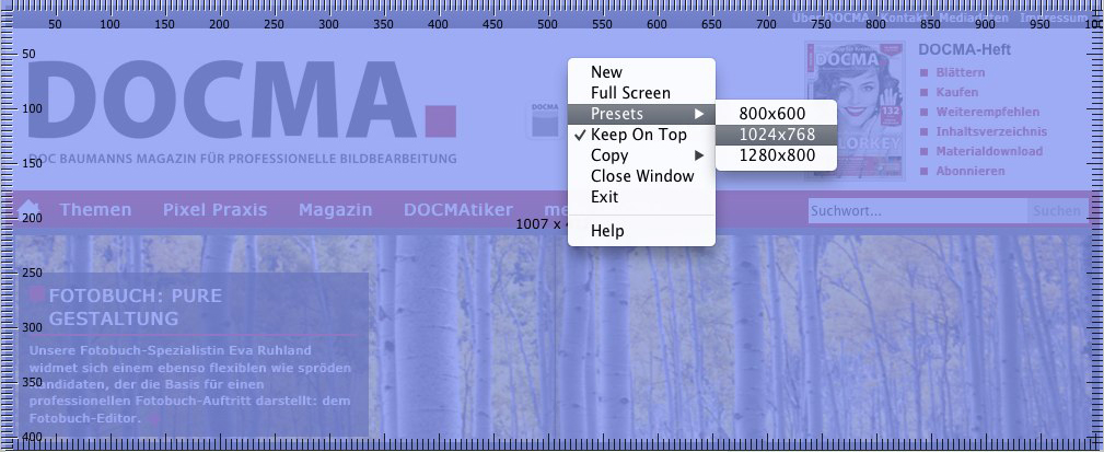 Die kostenlose, plattformübergreifende Air-Applikation PixelWindow erleichtert das Ermitteln von Pixelmaßen am Monitor.