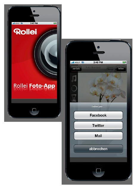 Die Rollei Foto App ist über iTunes gratis im App Store erhältlich (Suchwort „Rollei“ eingeben).