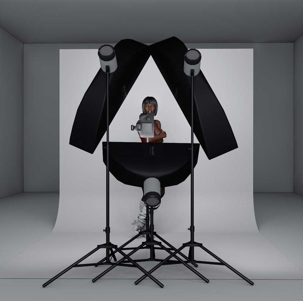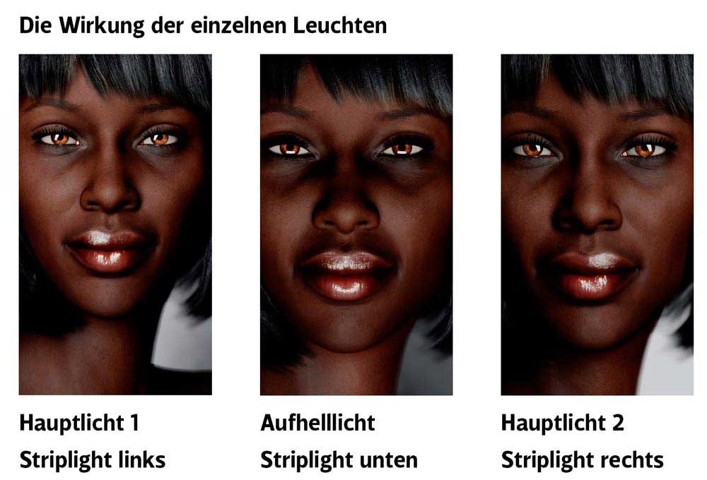 Finde die drei zusammengebauten Lichter genauso unwirklich wie ein Ringlicht.