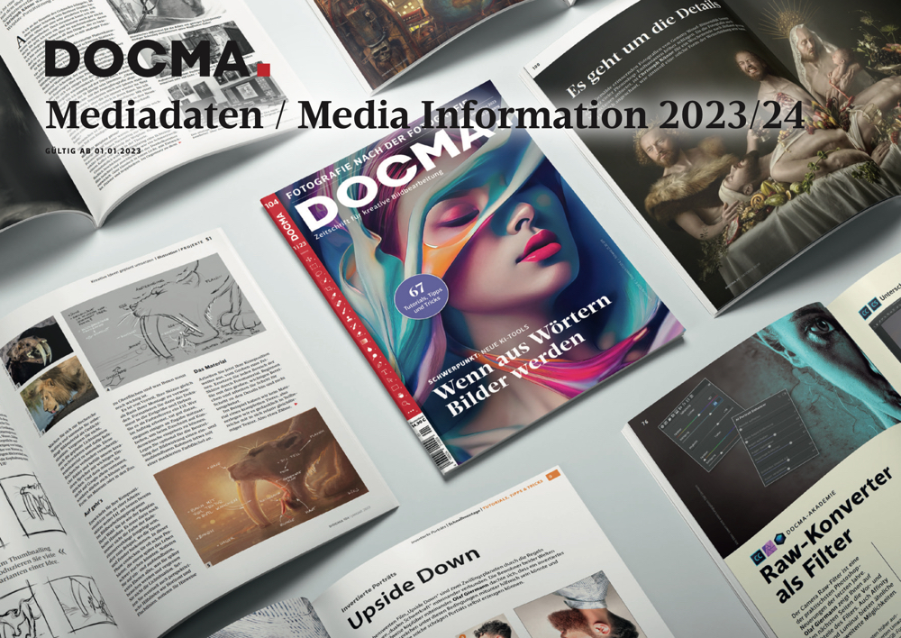 Seit 2003 ist DOCMA.info das führende Online-Medium für passionierte Kreative, die ihre Fotografie und Bildbearbeitung auf das nächste Level bringen wollen. Ursprünglich als Print-Magazin gestartet, hat sich DOCMA.info über die Jahre zu einem crossmedialen Angebot entwickelt, das heute Blog, Social Media und Newsletter miteinander verbindet. Mit einer monatlichen Brutto-Reichweite von über 250.000 Kontakten erreicht DOCMA.info eine Zielgruppe, die sich durch hohe Kompetenz, Experimentierfreude und Technikaffinität auszeichnet.