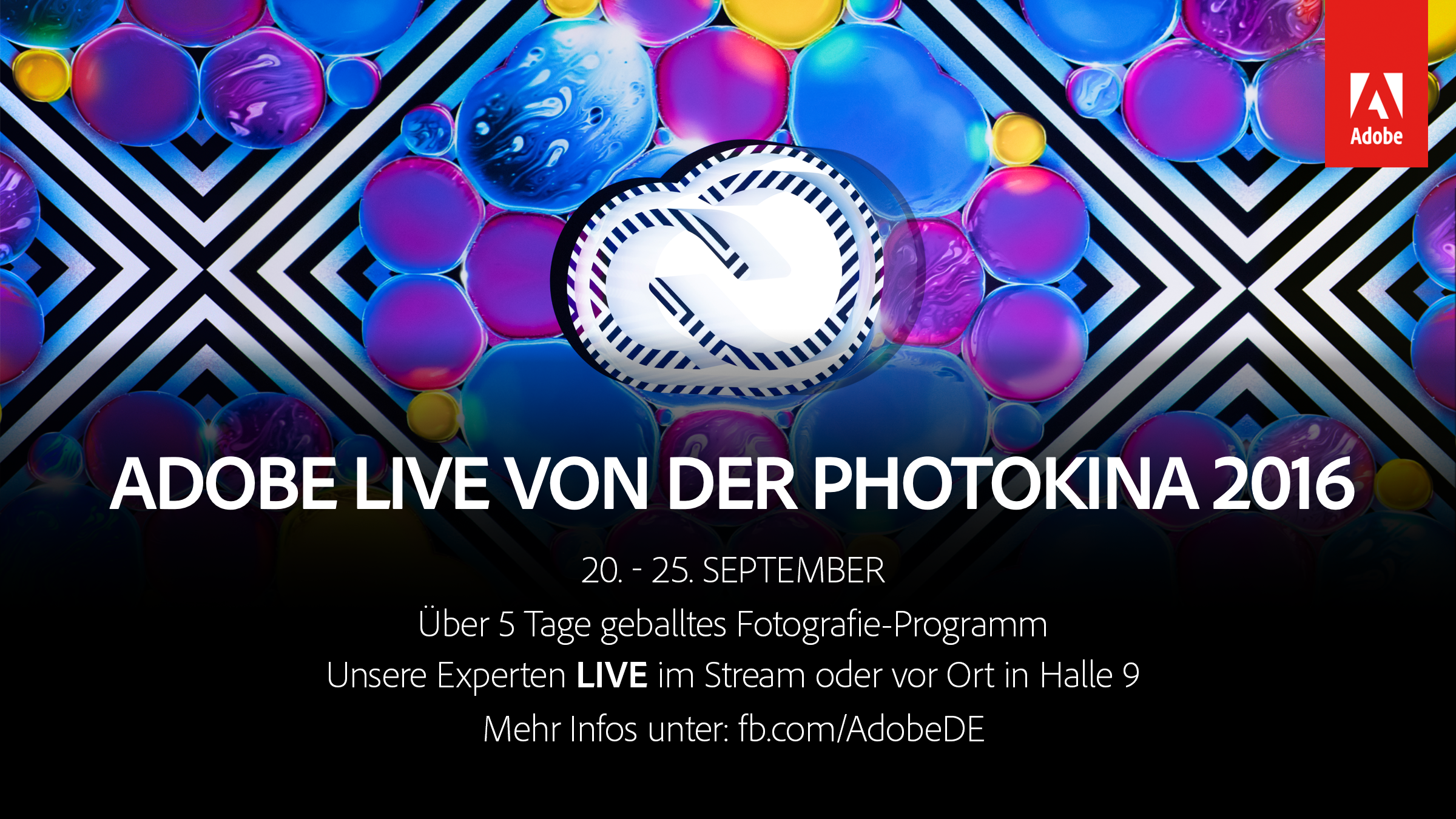 Auf dem Weg zum nächsten Level lernen aufstrebende Profis am besten von den Experten, die wissen, wie der Workflow läuft. Und von den Shootingstars, die die etablierten Genres aufmischen. Adobe vereint beide Lager in einem abwechslungsreichen Programm und überträgt vom 20. bis 25. September 2016 live von der Photokina sämtliche Shows im Stream auf der Adobe Website. Ob angehender Profi oder erfahrener Kreativarbeiter – wer einschaltet, wird mit wertvollen Insights und Kreativ-Trends belohnt.
