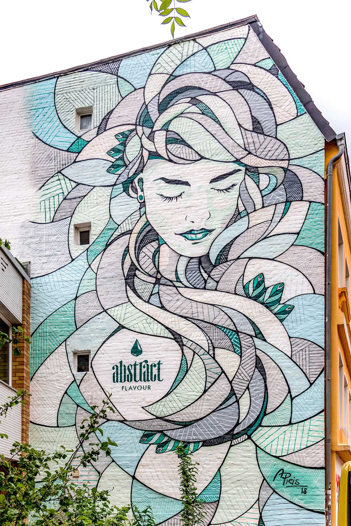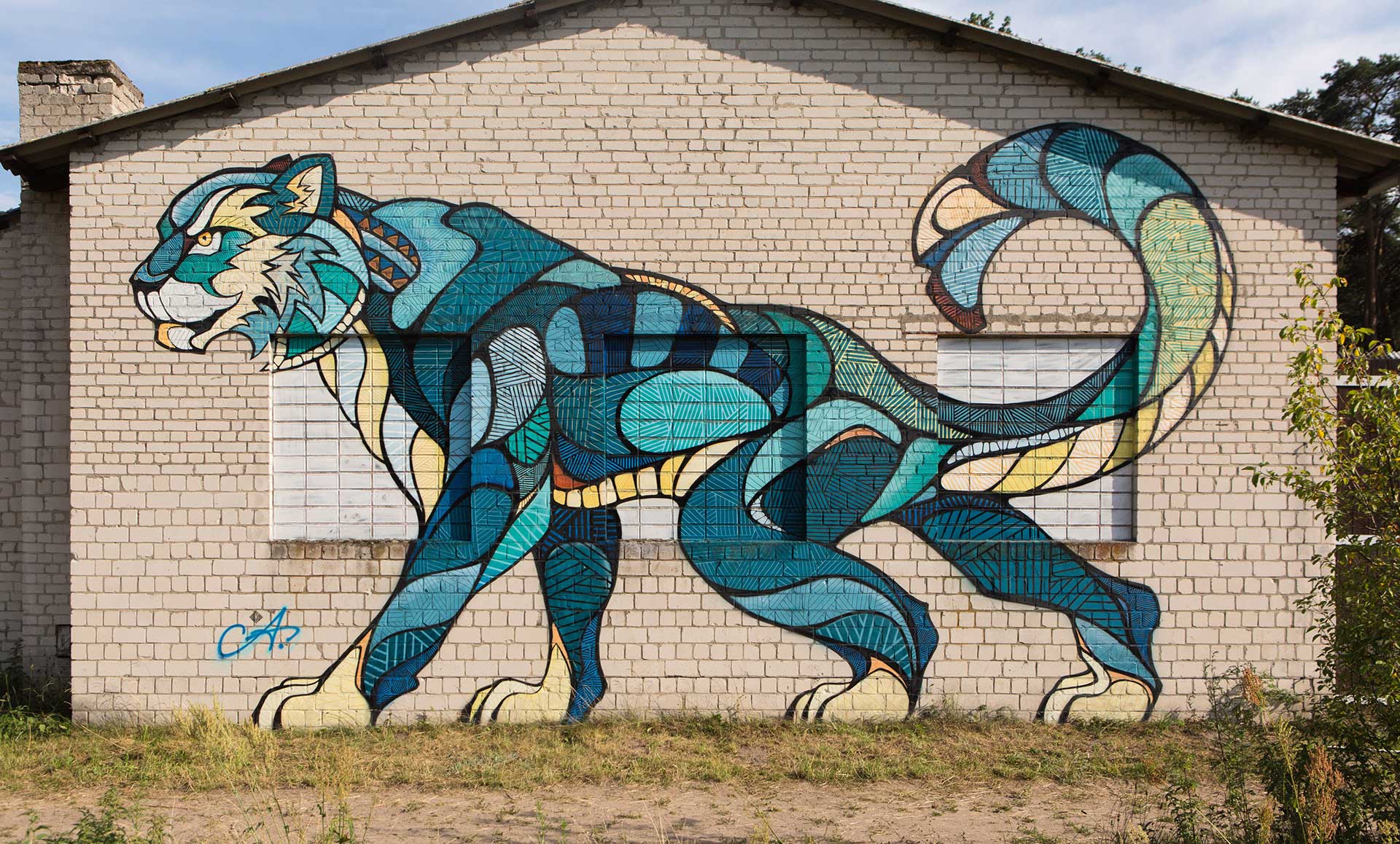 Die meisten seiner Illustrationen sind sehr symmetrisch. „Manche meiner digitalen Arbeiten sind einfach gespiegelt. Gerade, wenn es sowieso technisch wirken soll, bietet sich das an. Andere sind mit Gitternetz angelegt oder auch mal frei Hand gestaltet. Da gibt’s keine Patentlösung“, erklärt er. Obwohl der Illustrator häufig das digitale Arbeiten mit Adobe Photoshop CC, Illustrator CC, Photoshop Sketch und Illustrator Draw bevorzugt, malt er auch oft noch analog mit Acrylfarbe, Markern und Sprühfarbe. Auf die Frage, welche Projekte ihm besonderen Spaß gemacht haben, antwortet Andreas: „Ich habe mich sehr gefreut, als ich mit einem Kollegen eine Wand auf einem Dach in Brooklyn bemalen konnte. Und meine erste richtige Fassade von 70 Quadratmetern in St. Pauli, das war schon etwas Besonderes.“