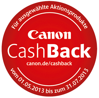 Zwischen dem 1. Mai und 31. Juli 2013 findet eine Canon CashBack-Aktion für die Spiegelreflexkameras EOS 700D, 60D und 7D statt. Damit ist mit der EOS 700D zum ersten Mal eine Kamera zu Verkaufsbeginn in einer CashBack- Aktion. Weiterhin umfasst die Aktion diverse Objektive und Blitzgeräte.
