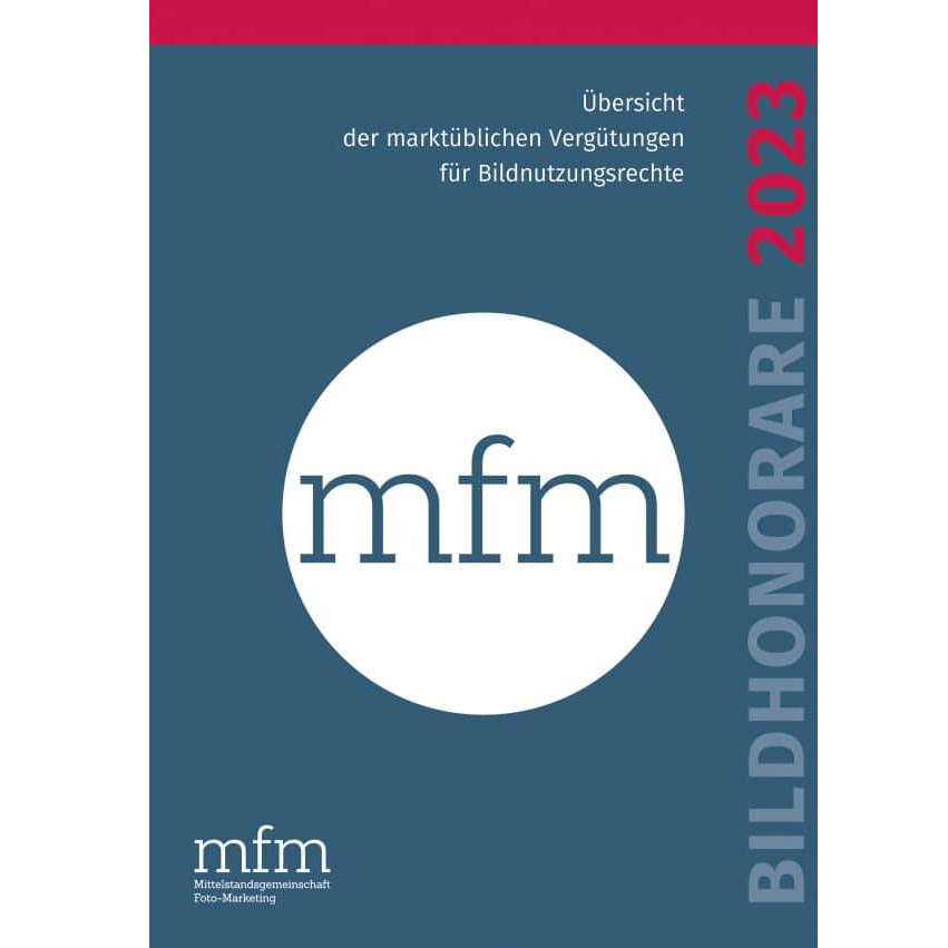 Jedes Jahr veröffentlicht die Mittelstandsgemeinschaft Foto-Marketing (mfm), ein Arbeitskreis des Bundesverbandes professioneller Bildanbieter (BVPA), ein Nachschlagewerk zu den marktüblichen Vergütungen für Bildnutzungsrechte. Grundlage für die gedruckt oder digital erhältliche Publikation ist eine breit angelegte Honorarabfrage unter professionellen Bildanbietern. Derzeit läuft die die anonyme Erhebung für das Heft 2024, wozu die mfm Fotografen und Bildagenturen in Deutschland um ihre Mitwirkung bittet. Wer in 2023 Bilder für die kommerzielle Verwendung lizenziert hat und sich an der Datenerhebung beteiligen möchte, sollte spätestens bis zum 8. November den Online-Fragenkatalog beantworten.