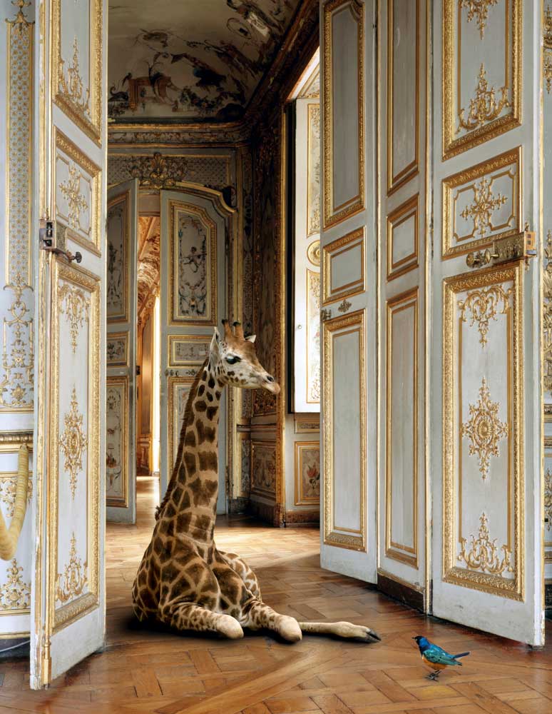 Karen Knorr entführt uns mit ihren Bildern auf die andere Seite des Spiegels. Die englische Fotografin gehört einer Generation an, die das Wesen des fotografischen Kunstwerks hinterfragt und in ihm nicht mehr nur ein Abbild der Wirklichkeit sieht, sondern ein eigenständiges, gemachtes Bild. Sie zeigt Füchse, Wildschweine, Hirsche oder Reiher, die sich in prunkvolle Gemächer des Ancien Régime vorgewagt oder in prächtigen indischen Palästen verlaufen haben. So entstehen unwirkliche Szenen, denen der Betrachter, halb amüsiert, halb beunruhigt, mit zweifelndem Blick gegenübersteht, in stillschweigender Anerkennung des Paktes. So bekommt Knorrs Werk in seiner allegorischen Gestalt Züge einer Parodie auf die Kunstformen der Vergangenheit sowie einer Kritik des ästhetischen Urteils.