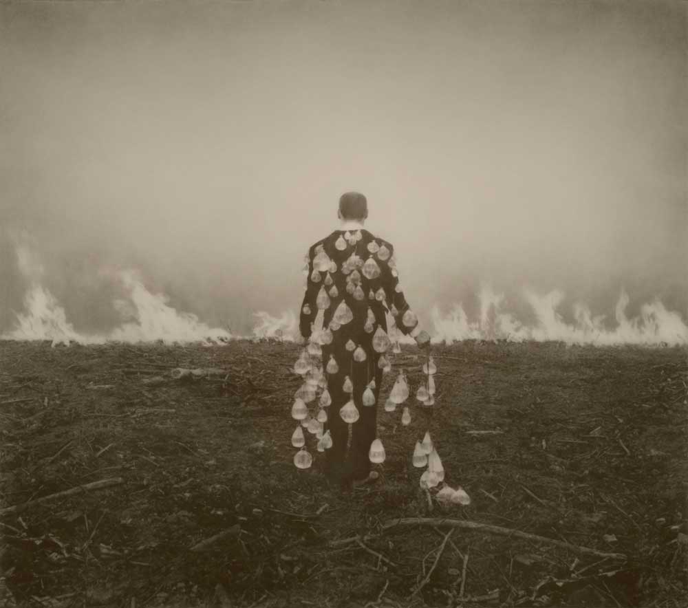Fremdartige Bilder mit antiquiert anmutenden Farbschattierungen, die geradewegs einem Traum zu entstammen scheinen. Eine bizarre Welt, in der Menschen versuchen, ein malträtiertes Stück Land wiederherzustellen, oder sich an einem Baum festhalten, der vereinzelt in einer gerodeten Umgebung steht. Robert wurde 1968 in Missouri geboren, Shana 1964 in Oklahoma. Die beiden Kunstfotografen und engagierten Umweltschützer arbeiten seit über 20 Jahren zusammen. Mit ihren Werken, die sich einer surrealistischen Bildsprache bedienen, wollen sie der Tatsache entgegentreten, „dass die einst so verheißungsvolle Verbindung zwischen Mensch, Technologie und Natur zunehmend brüchiger wird“, weil Wissenschaft und Technik es nicht geschafft haben, die Probleme der Menschheit zu lösen. Die poetische Symbolsprache dieser Bilder regt zum Nachdenken über das komplexe Verhältnis an, das jeden Einzelnen von uns mit unserem Planeten verbindet.