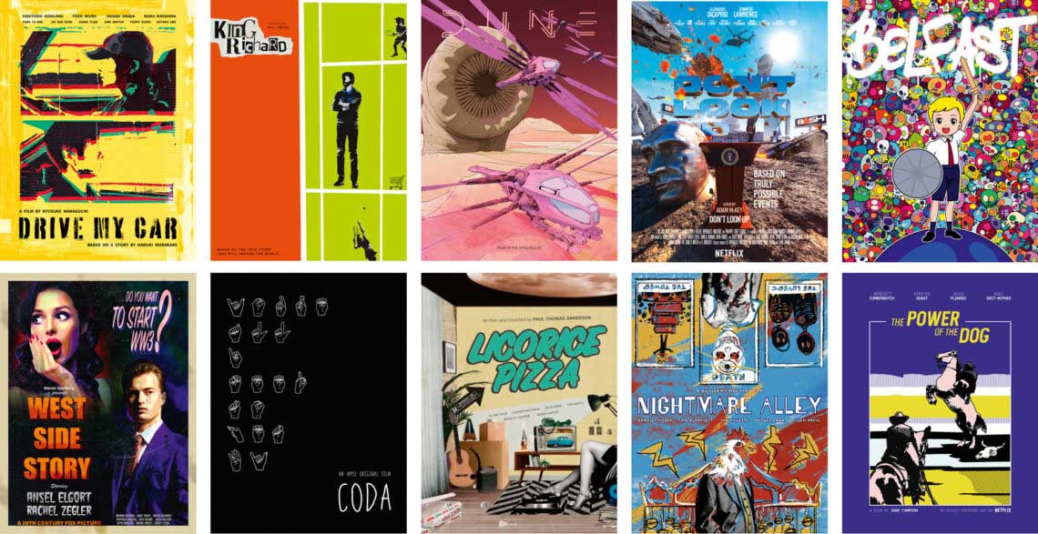 Die diesjährige Liste der nominierten Filme und Künstler, die die Designer:innen beeinflusst haben, umfasst unter anderem: „Belfast“, inspiriert von Takashi Murakami, „CODA“, inspiriert von Christine Sun Kim, „Don’t Look Up“, inspiriert von Beeple, „Drive My Car“, inspiriert von Andy Warhol, „Dune“, inspiriert von Moebius, „King Richard“, inspiriert von Rosalyn Drexler, „Licorice Pizza“, inspiriert von Richard Hamilton, „Nightmare Alley“, inspiriert von Jean-Michel Basquiat, „The Power of the Dog“, inspiriert von Roy Lichtenstein, und „West Side Story“, inspiriert von Karoly Grosz.
