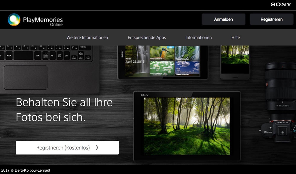Sonys Cloud-Speicherdienst für Fotografen heißt PlayMemories Online und ist kostenlos für alle nutzbar, selbst wenn sie keine Sony-Kamera besitzen. Trotz des Null-Tarifs wirbt der Dienst sogar mit „unbegrenztem Speicherplatz“.