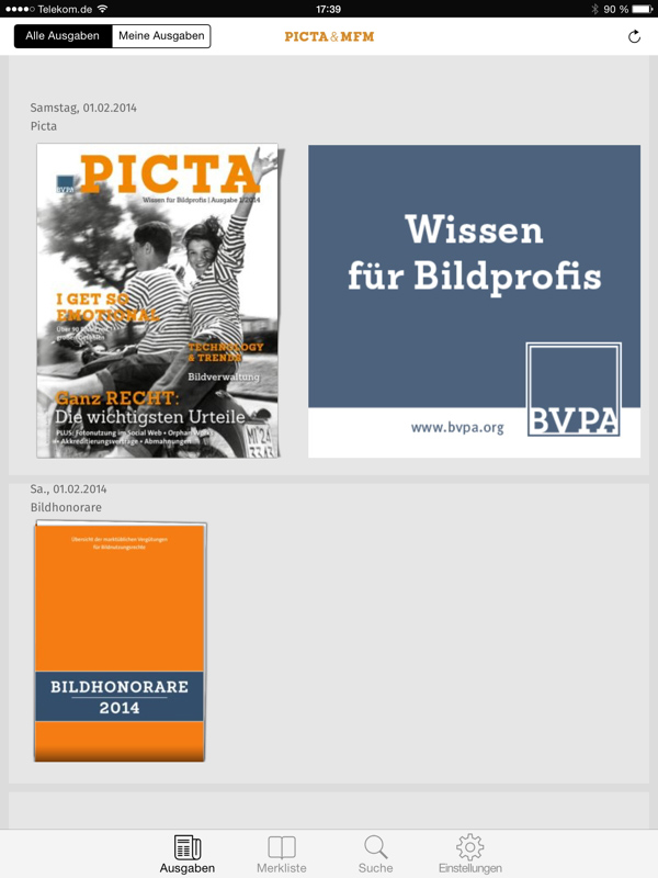 Der Bundesverband der Pressebild-Agenturen und Bildarchive e.V. bietet seine Publikationen „MFM Bildhonorare“ und „PICTA-Magazin“ jetzt auch als App für mobile Endgeräte an.