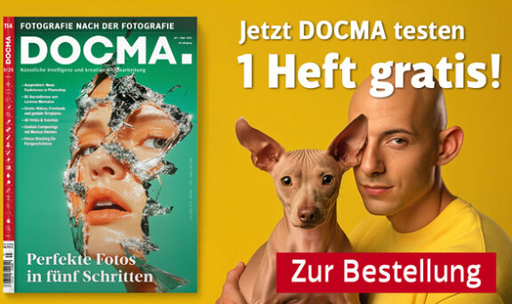 Ab sofort ist die neue DOCMA 114 erhältlich: als Print-Ausgabe und E-Paper-Ausgabe bei uns im Webshop. Das Heft ist wieder prall gefüllt mit spannenden Beiträgen – von den neuen Funktionen in Photoshop, Lightroom und Co über die Fotooptimierung in 5 Schritten und inspirierende KI-Projekte bis zu wertvollem Hintergrundwissen für kreative Bildermacher. Informieren Sie sich hier über die Highlights der neuen Ausgabe.