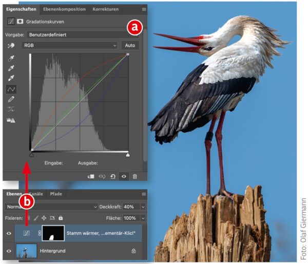 Für das Entfernen-Werkzeug gibt es einige nützliche Änderungen. Das neue zugrundeliegende KI-Modell verspricht bessere Ergebnisse und fügt seltener neue Objekte anstelle der entfernten ein. Zudem soll es keine generativen Credits mehr beanspruchen. Beim Anwenden des Werkzeugs wird optional eine Ebenenkopie oder eine neue Ebene erzeugt (a). In der »Kontextbezogenen Taskleiste« gibt es jetzt bei einer aktiven Auswahl eine »Entfernen«-Schaltfläche (c). Sie können dadurch mit den Auswahlwerkzeugen von Photoshop zu retuschierende Objekte auswählen (b) und mit einem Klick entfernen lassen. Dabei kommt übrigens dasselbe neue KI-Modell wie beim »Entfernen-Werkzeug« zum Einsatz.