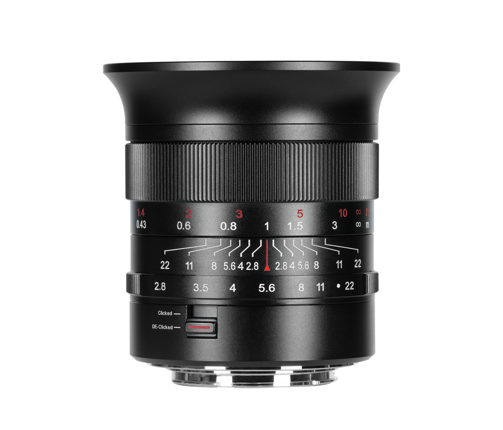 Das „7Artisans 14mm f/2,8“ eignet sich mit einem Bildwinkel von 116° vor allem für Landschafts-, Architektur- und Astrofotografie. Nach Herstellerangaben sorgt die Konstruktion aus 13 Elementen in 9 Gruppen – darunter zwei asphärische, fünf hochbrechende sowie drei mit geringer Farbstreuung – für höchste Schärfe und effektive Kontrolle von Verzeichnung und Farbsäumen. Zehn Blendenlamellen erzeugen laut 7Artisans einen sehr ansprechenden Blendenstern bei punktförmigen Lichtquellen. Der Blendenring lässt sich von rastend und stufenlos umstellen – ein Vorteil beim Filmen. In das vordere Ende des Metallgehäuses ist ein 77-Millimeter-Filtergewinde eingearbeitet.