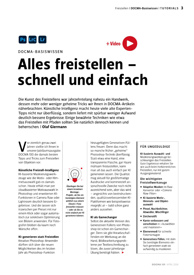 Beitrag von Olaf Giermann, 15 Seiten ePaper + 12 Video-Anleitungen. Auszug aus DOCMA #109.