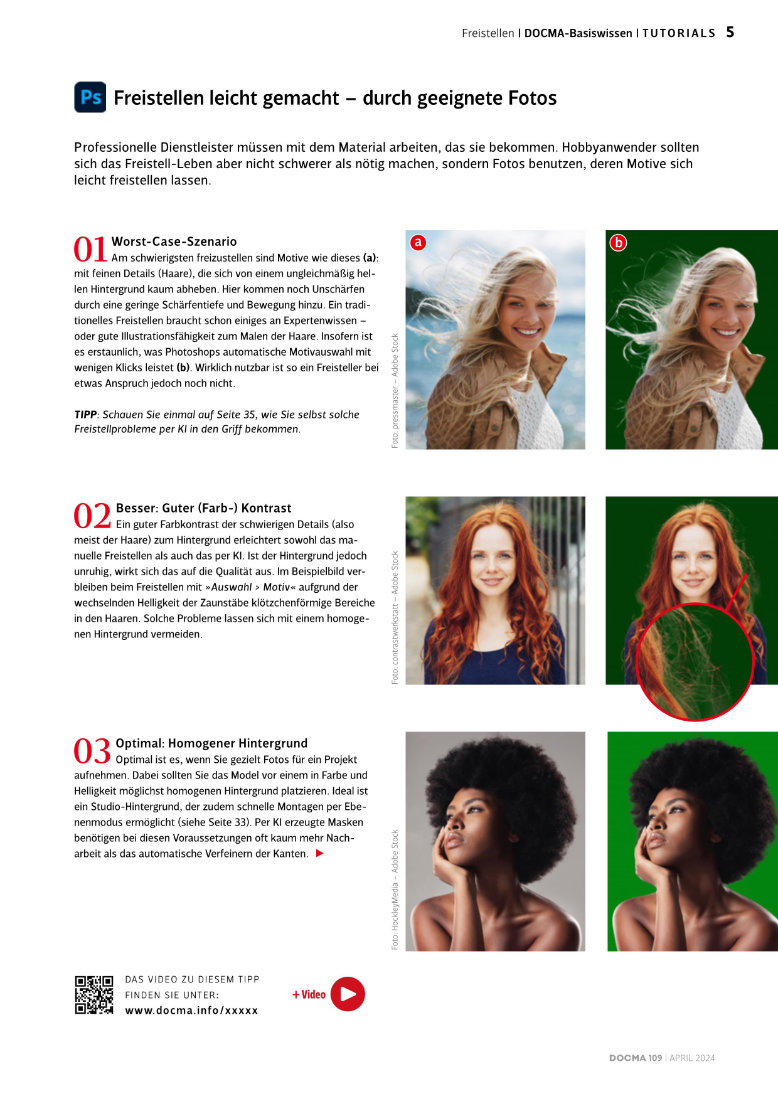 Künstliche Intelligenz macht heute viele alte Freistellen-Tipps überflüssig und kann mit spürbar weniger Aufwand bessere Ergebnisse liefern. Doch auch die KI-Auswahl hat Grenzen und will überlegt angewendet werden. Denn nicht immer führt die automatische Auswahl eines Objekts oder Motivs auch automatisch zu den gewünschten Ergebnissen. Da sind dann doch noch einige Tipps, die ins Detail gehen, sehr hilfreich – und dann zahlt es sich auch aus, wenn man bewährte Techniken wie etwa das Freistellen mit Pfaden kennt und beherrscht.