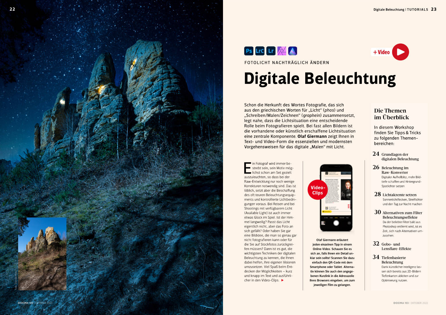 Top-Themen: Profitricks für Fotomontagen  | Digitale Beleuchtung |  Porträt-Rekonstruktion | Schwarzweißfotos optimieren | Extreme Farbstiche entfernen | Kulturelle Aneignung? | Tipps & Tricks für Capture One | … | 100 Seiten. + Arbeitsmaterial und Videotutorials.