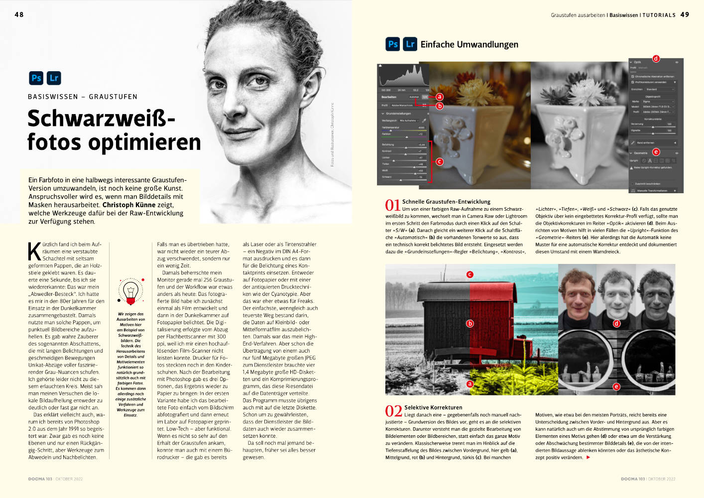 • Schwarzweißfotos optimieren  Christoph Künne zeigt in diesem Basiswissen-Artikel, wie Sie bei der Raw-Entwicklung von Farbfotos zu Schwarzweißbildern Details mit Masken herausarbeiten.
