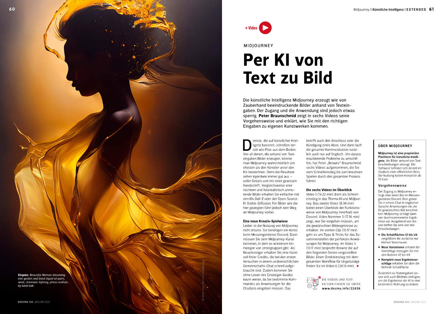 Top-Themen: Die Zukunft des Bildermachens | Midjourney – Per KI von Text zu Bild | Tipps & Tricks für Photoshop, Camera Raw, Lightroom Classic, Capture One und Luminar Neo | Mit dem kostenlosen Scrapbook-Mock-up ein künstlerischen Fotobuch erstellen. | Wetplates – Porträtfotos alten Kollodium-Nassplattenverfahren | Freeloads | … | 100 Seiten. + Arbeitsmaterial.