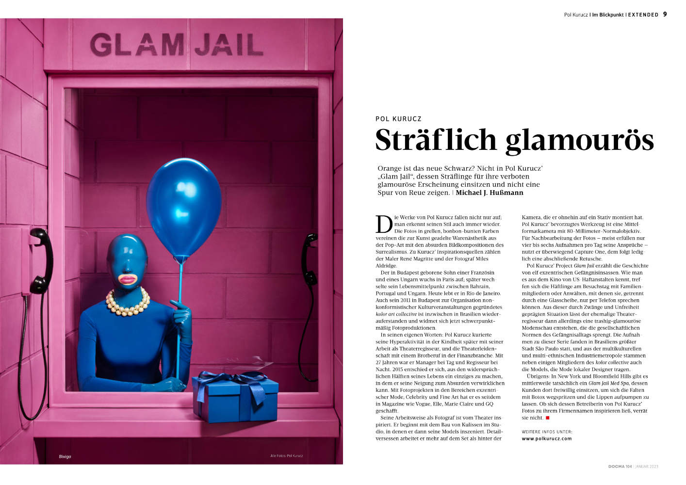 • Sträflich glamourös  In seiner Bildserie „Glam Jail“ inszeniert Pol Kurucz Models als Sträflinge, die für ihre verboten-glamouröse Erscheinung einsitzen.