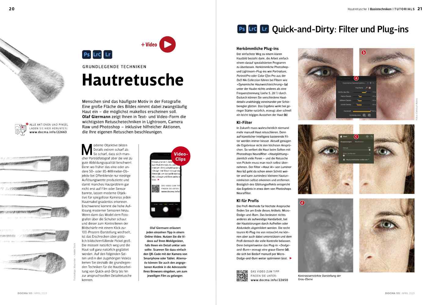 + Arbeitsmaterial und VideoanleitungenBei einigen Beiträgen dieser Ausgabe können Sie die verwendeten Bilder, Videotutorials, Aktionen und Presets über einen beigefügten Kurzlink abrufen, um die Vorgehensweise am eigenen Rechner nachzuvollziehen. Hier erfahren Sie mehr darüber. |