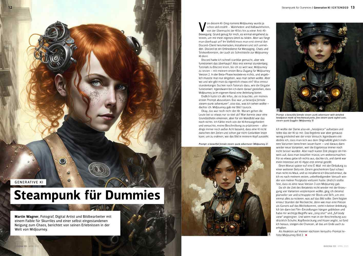 - Steampunk für Dummies Martin Wagner, Fotograf, Digital Artist und Bildbearbeiter mit einem Faible für Skurriles und einer selbst eingestandenen Neigung zum Chaos, berichtet von seinen Erlebnissen in der Welt von Midjourney.