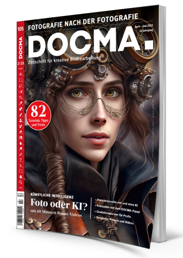Top-Themen: DOCMA-Freistellen-Panel 2.0 mit zahlreichen praktischen Erweiterungen und Verbesserungen | Wie man mit einer KI spricht | Tipps & Tricks für Affinity Photo 2 | Bild-KI kostenlos auf dem eigenen Rechner nutzen | Grundlegende Techniken der Hautretusche | Radiale Schlagschatten | … | 100 Seiten + Videoanleitungen + Arbeitsmaterial.