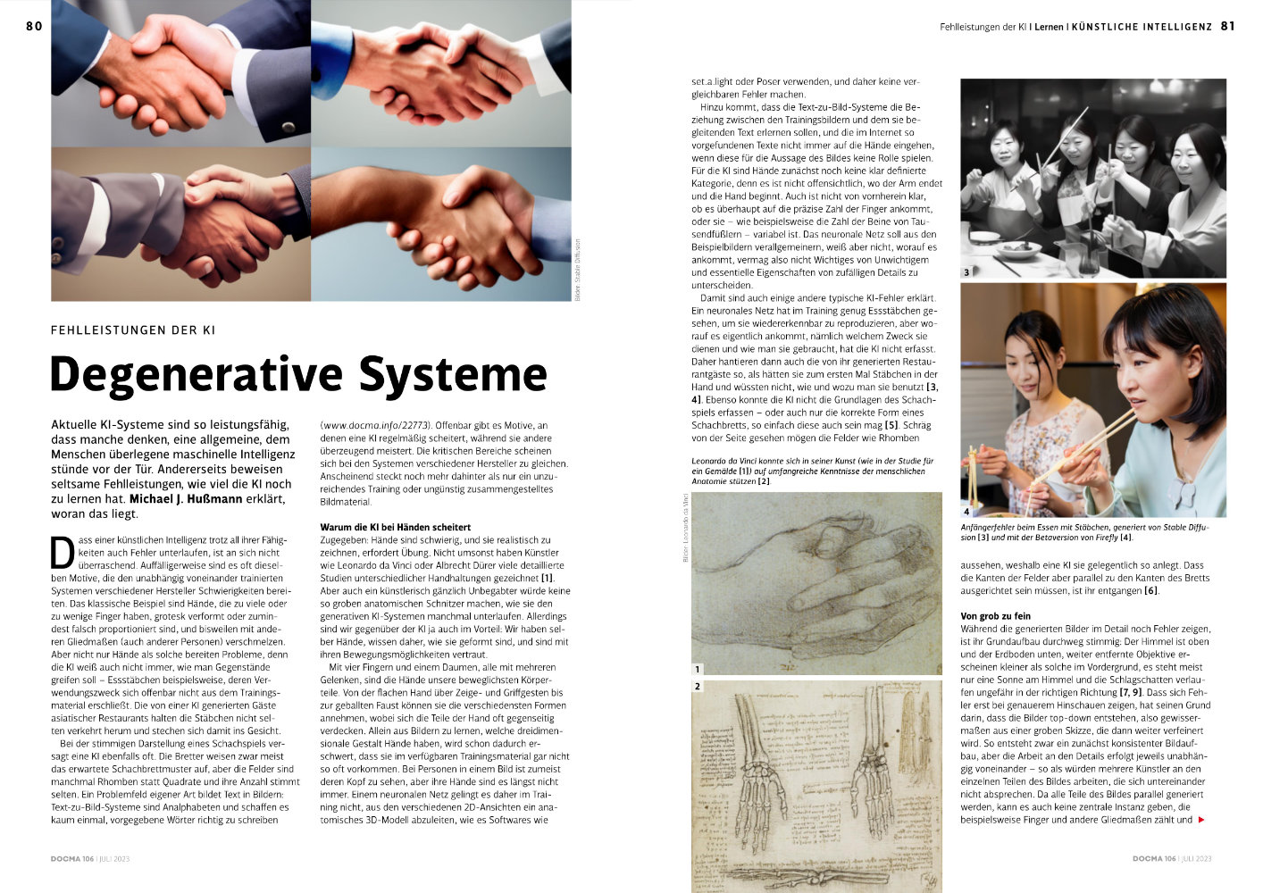 - Degenerative Systeme Seltsame Fehlleistungen aktueller KI-Systeme zeigen, dass die KI noch viel zu lernen hat. Michael J. Hußmann erklärt, woran das liegt.