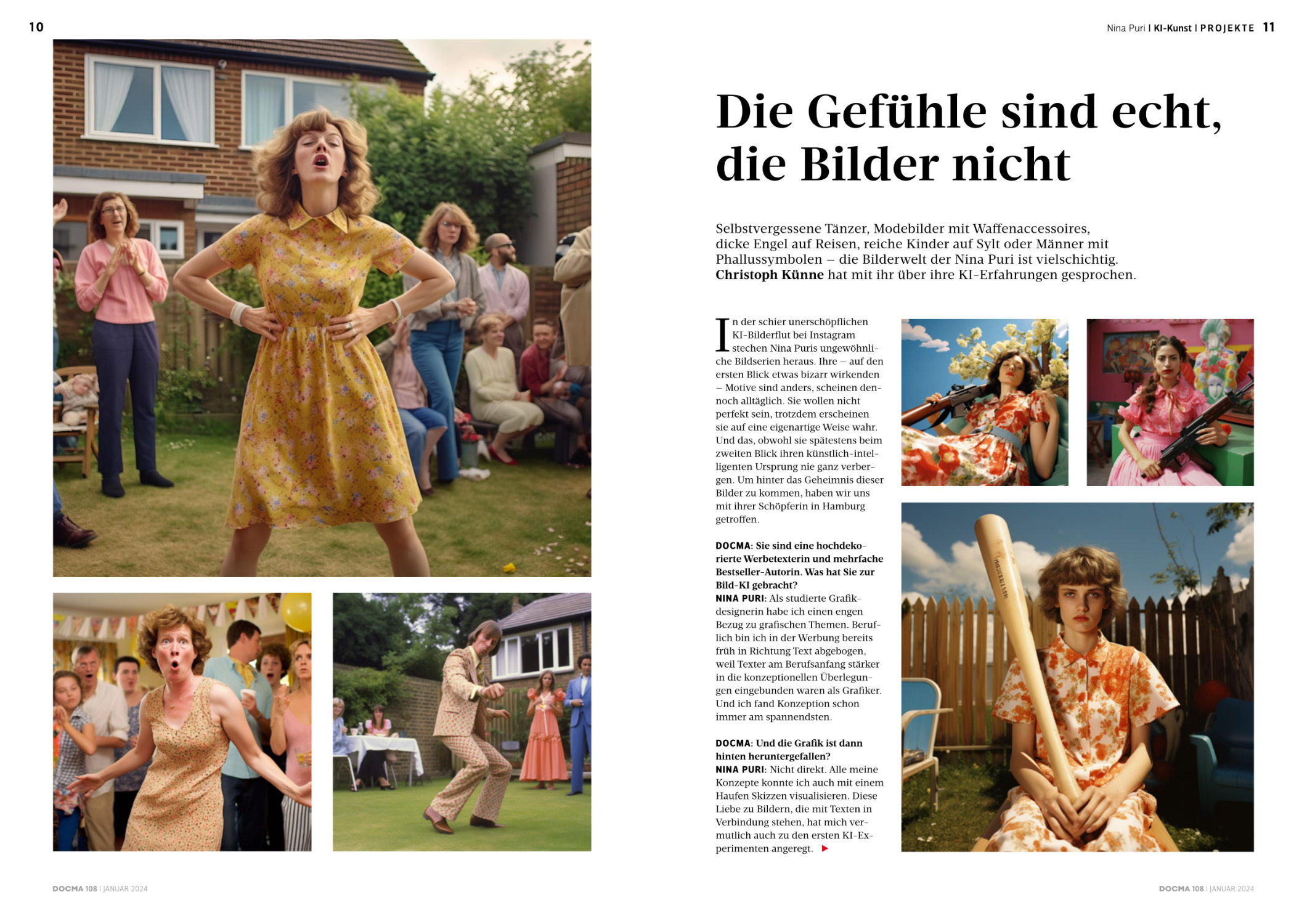 - Die Gefühle sind echt, die Bilder nicht Selbstvergessene Tänzer, Modebilder mit Waffenaccessoires, dicke Engel auf Reisen, reiche Kinder auf Sylt oder Männer mit Phallussymbolen … Christoph Künne sprach mit Nina Puri über ihre KI-generierten Bilderwelten.