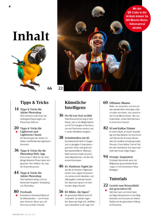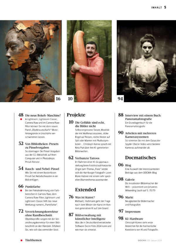 DOCMA 108 1-2024, 100 Seiten, als Print-, 2GO- und ePaper-Ausgabe erhältlich.