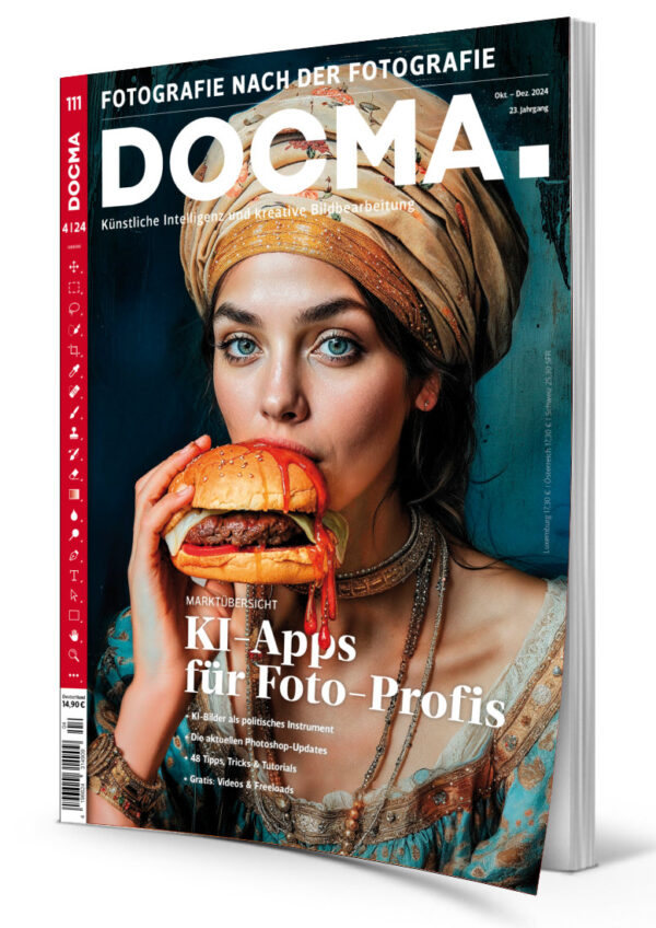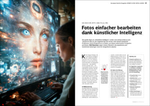Top-Themen in dieser Ausgabe: Marktübersicht: KI-Apps für Foto-Profis | KI-Bilder als politisches Instrument | Die aktuellen Photoshop-Updates | 48 Tipps, Tricks & Tutorials | Gratis: Videos & Freeloads.