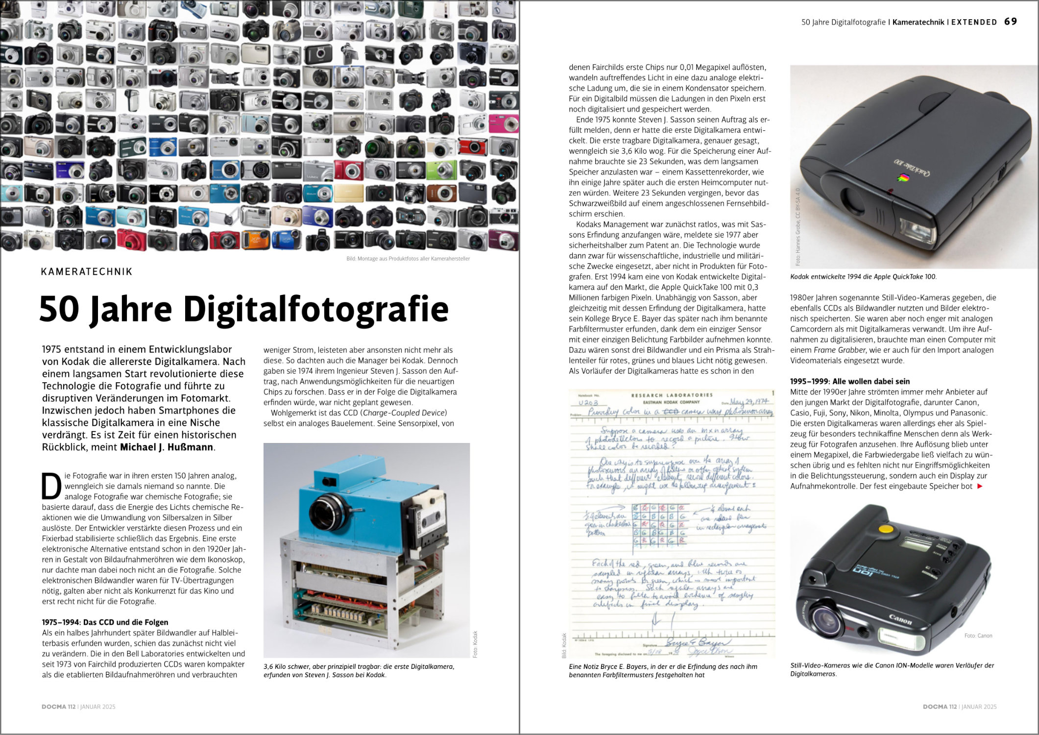 • 50 Jahre Digitalfotografie  Michael J. Hußmann gibt einen Überblick über die Entwicklungsgeschichte der Digitalfotografie.