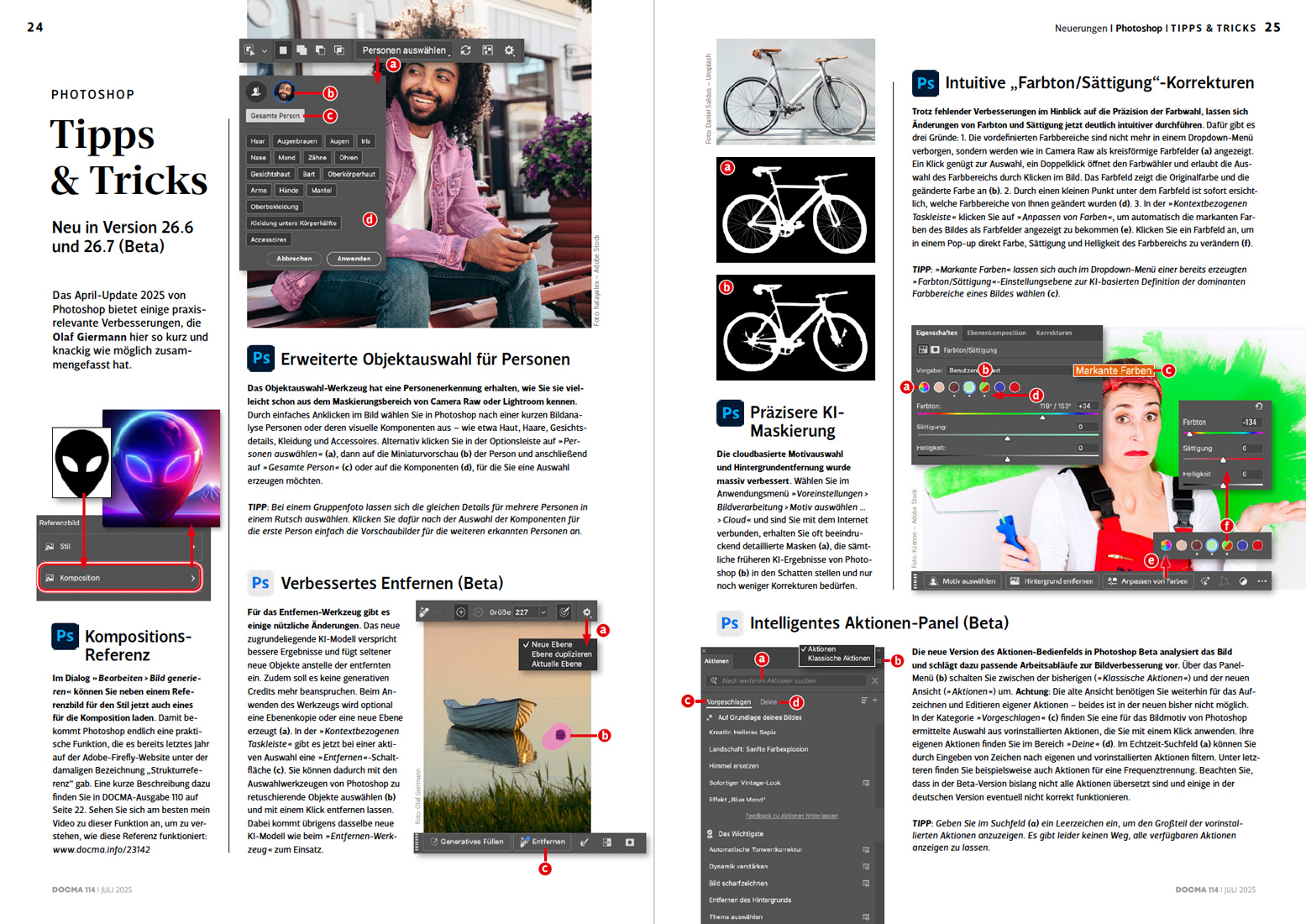 • Tipps & Tricks für Adobe Photoshop  Olaf Giermann stellt die Neuerungen des April-Updates 2025 vor.