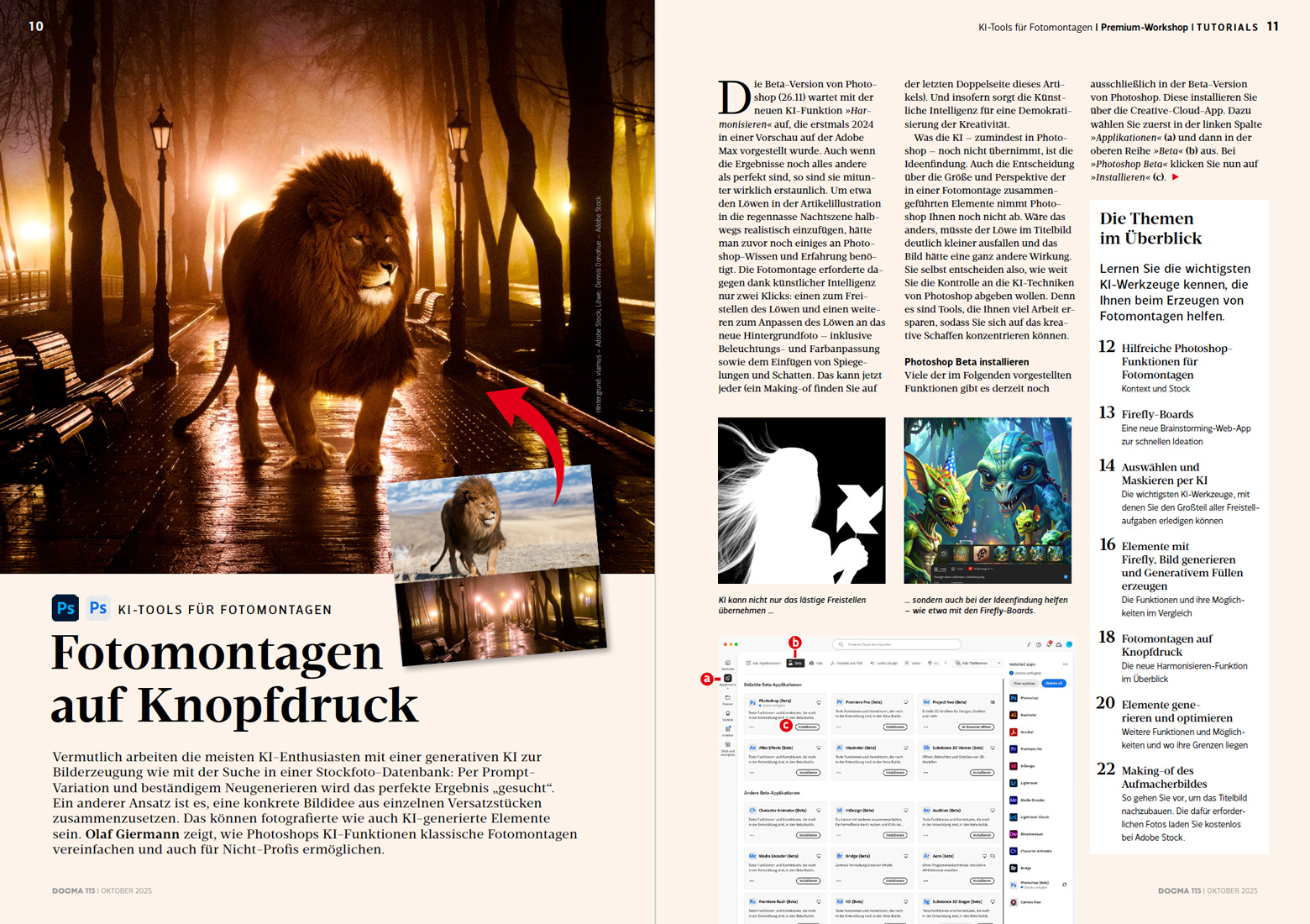 - Fotomontagen auf Knopfdruck Olaf Giermann zeigt, wie Photoshops KI-Funktionen klassische Fotomontagen vereinfachen und auch für Nicht-Profis ermöglichen.