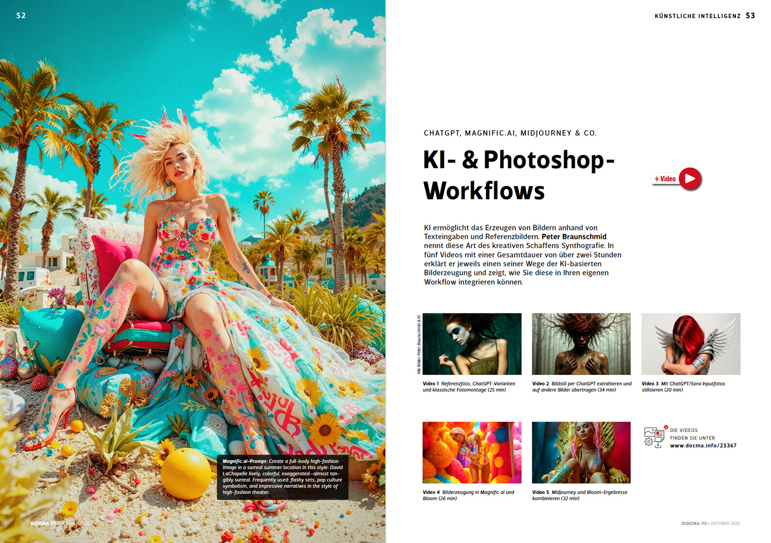 - KI- und Photoshop-Workflows Peter Braunschmid erklärt in fünf Videos jeweils einen seiner Wege der KI-basierten Bilderzeugung.