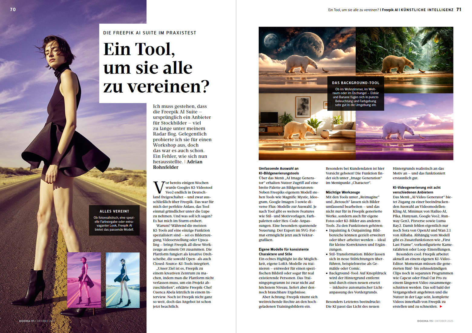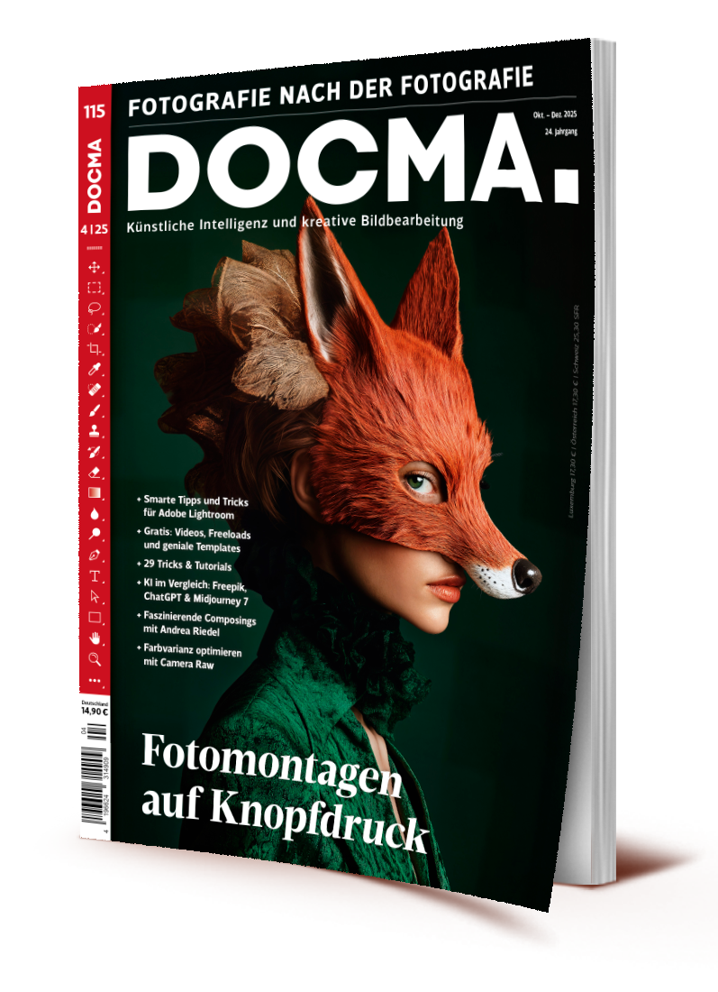 Top-Themen in dieser Ausgabe: Fotomontagen auf Knopfdruck | KI im Vergleich: Freepik, ChatGPT & Midjourney 7 | Faszinierende Composings mit Andrea Riedel | Farbvarianz optimieren mit Camera Raw | Erst generieren, dann veredeln | Smarte Tipps und Tricks für Adobe Lightroom | 29 Tipps, Tricks & Tutorials | Gratis: Videos, Freeloads, Templates