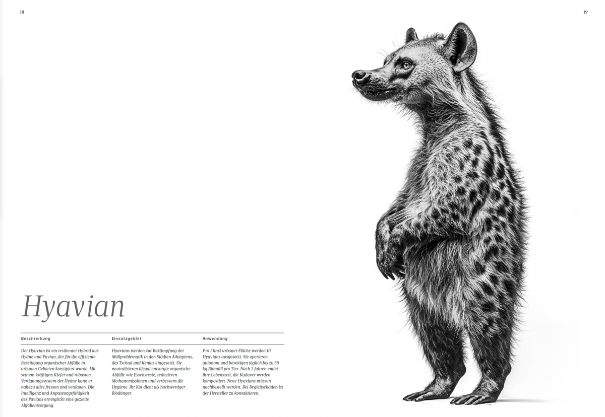 Dieses Kunstprojekt an der Schnittstelle von Technologie und Ökologie geht der Frage nach: Kann Künstliche Intelligenz die drängendsten Umweltprobleme unserer Zeit lösen? Das Projekt HAIBRIDS nutzt modernste KI-Systeme, um hypothetische, genetisch modifizierte Tierarten zu entwickeln – und regt dabei zu einer kritischen Auseinandersetzung mit den Grenzen und Möglichkeiten dieser Technologie an.