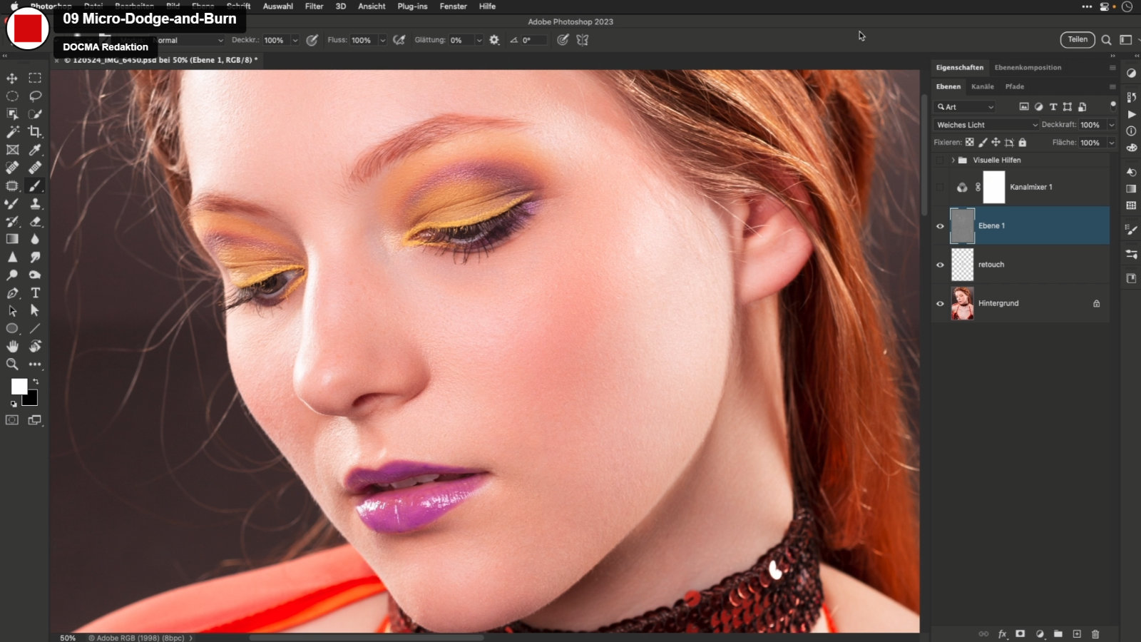 Olaf Giermann erläutert in einem 10-seitigen ePaper und in 13 Video-Tutorials die wichtigsten Retuschetechniken in Lightroom, Camera Raw und Photoshop, inklusive hilfreicher Aktionen zur Beschleunigung des Workflows, um die Hautmakel auszugleichen.